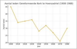 The house meetings that had been held in Hoenzadriel even after the dissolution of the congregation in 1859 likely continued as usual afterwards, as we could still read above in 1879. Apparently, in 1897, the growth in membership was deemed sufficient to establish an independent ‘Gereformeerde’ Church, which likely emerged from evangelistic efforts.