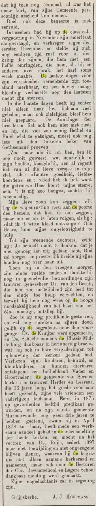 Maar al lang voor die tijd, op 18 februari dat jaar, preekte hij voor het laatst, omdat zijn gezondheid hem in de steek liet. ‘Een aanval van beroerte noopte hem emeritaat aan te vragen, wat hem per 1 december 1914 verleend werd’. Ruim drie weken later, op 24 december 1914, overleed hij.