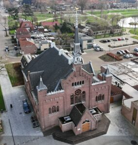 De Hoofdstraatkerk te Hoogeveen, gezien vanuit een drone (foto: RTV Drenthe, Stefan Klomp).