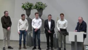 Next, Gerrit Barends, chairman of the organ committee, gave an overview of how the new organ came into being, noting that it had already been used for the first time in worship services on 7 December 2025. It became clear that the organ committee had visited many churches before arriving at the final design. First, they visited the former ‘gereformeerde’ Zilverstraat Church in Franeker, where an organ was offered. “That was nothing; it was being held together with adhesive tape.” They then went to Amsterdam, to the Westgaarde Crematorium, where two organs were for sale and which they wanted to get rid of. These were also not suitable. In the recently closed former ‘gereformeerde’ Church De Hoeksteen in Maasdijk, an organ was also being offered, but this proved too small for the large ‘gereformeerde’ Church De Poort on Urk.